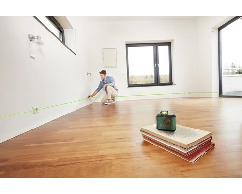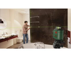 De AdvancedLevel 360 brengt alle benodigde referentiepunten in één toestel bij elkaar, als het gaat om eenvoudig en snel uitlijnen, rechtzetten en overbrengen. Precies uitlijnen is gewaarborgd door de projectie van de 360° horizontale laserlijn en de verticale lijn. De tweede verticale laserlijn in een hoek van 90° zorgt voor snel en exact rechtzetten. Het plafondkruis zorgt, als aanvulling op het loodpunt omlaag, voor snel overbrengen. Door groene laserlijnen is de zichtbaarheid tot wel 4 keer beter t.o.v. rode laserlijnen, zelfs bij fel licht. Of nu verlaagde plafonds gemonteerd, meubels op dezelfde hoogte gezet, gipswanden en douchecabines gemonteerd of lampen opgehangen moeten worden, de kwaliteiten van deze 360° lijnlaser garanderen optimale resultaten, zelfs bij gebruik op iets ruwe oppervlakken.