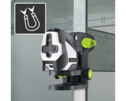 Deze automatische kruislijnlaser is ideaal voor de uitlijning van horizontale en verticale lijnen en hellingen. Dankzij de groene lasertechnologie wordt een uitstekende zichtbaarheid geboden. Een extra loodlaser en de referentiestraal maken synchroon werken op vloer en plafond mogelijk. Optische signalen waarschuwen de gebruiker als het nivelleerbereik wordt verlaten. Voor grote afstanden beschikt het apparaat over een geïntegreerde handontvangermodus. Met de in hoogte verstelbare console kan de laser op het compacte statief, direct op de wand of op metalen oppervlakken worden bevestigd. De pendelvergrendeling is bedoeld voor een veilig transport.