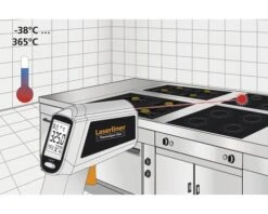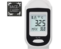 Gewoon inschakelen, op de te meten plek richten en enkele seconden later wordt de gemeten temperatuur weergegeven. De thermometer bestrijkt een groot temperatuurbereik van -38°C tot 356°C. Bij de weergave van de gemeten temperatuur op het verlichte LC-display kun je gemakkelijk schakelen tussen °C en °F.