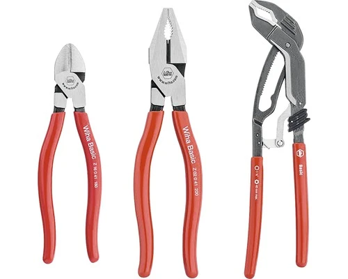 | Kenmerk | Verschillende lengtes: combitang 180 mm, krachtige kniptang 160 mm, waterpomptang 200 mm |