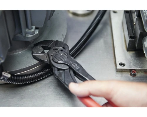 Bij installatiewerkzaamheden op krappe locaties is het instellen van de tang met een druk op de knop vaak best moeilijk en onhandig. De tangsleutel van Wiha brengt hier licht in de duisternis! Het instellen van de vereiste sleutelmaat direct op het werkstuk, zonder druk op de knop, maakt het werken sneller en gemakkelijker. Slijtage en beschadiging van gevoelige oppervlakken wordt door de zeer gladde en parallel bewegende bekken geminimaliseerd. Dankzij de tot wel tienvoudige handkrachtversterking worden pers- en buigwerkzaamheden een stuk gemakkelijker en wordt de belasting op spieren en pezen verminderd. Nog een pluspunt is het ratelprincipe. De openingsslag van de bekken maakt sneller schroeven mogelijk door eenvoudig overglijden. Daardoor wordt ook de toegankelijkheid van krappe locaties aanmerkelijk verbeterd. Verdere bijzonderheden zijn de zelfklemming vanaf sleutelmaat 17 en de met de knoploze werking samenhangende bedienings- en toepassingsmogelijkheden voor zowel rechts- als linkshandigen.