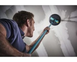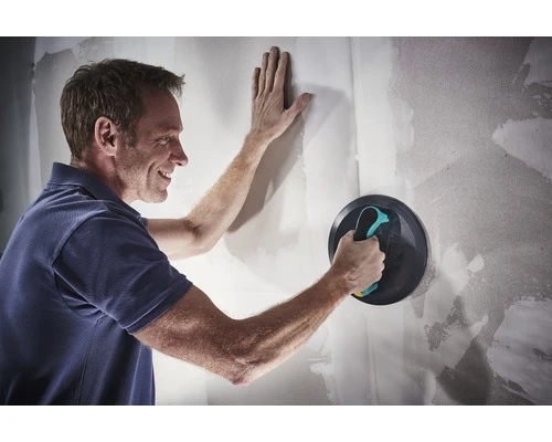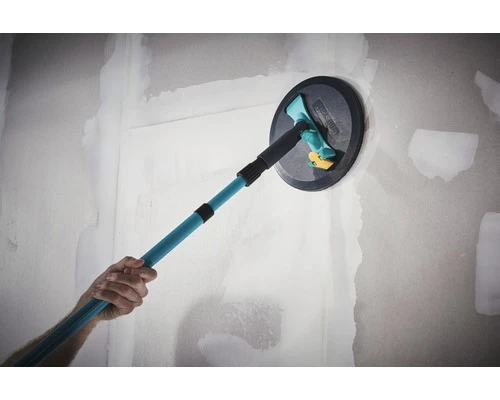 Met de rondslijper van 225 mm wordt het schuren van drywall-wanden comfortabeler en effectiever, omdat de ronde steunschijf bij gebruik tegen de wand niet tot omklappen neigt en voor een continu stabiel schuurproces zorgt. Aan de goed hechtende klittenbandverbinding kunnen alle in de handel gebruikelijke stramienen met een diameter van 225 mm worden aangebracht. De schijf van de rondslijper kan zowel met de hand als met de optioneel verkrijgbare telescoopsteel worden gebruikt, die niet alleen zorgt dat eenvoudig boven het hoofd werken mogelijk is, maar bij gebruik bij wanden ook een gezonde afstand tot het stof kan worden aangehouden.